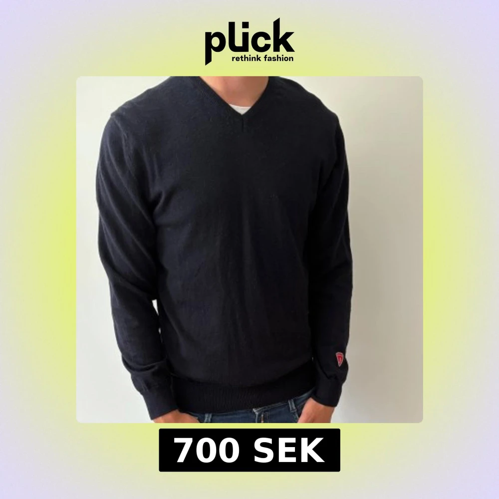 Säljer nu en snygg klassisk mörkblåa v-ringad tröja från Ivanhoe med lång ärm och diskret logga på ärmen. Tröjan är i 100% merinoull och passar perfekt till S/M storlekar