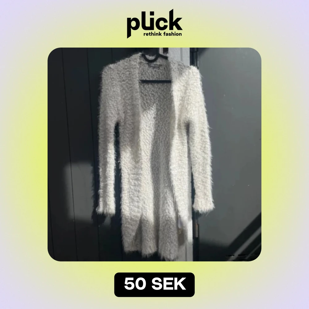 Säljer en supermysig vit kofta som är perfekt för kyliga dagar. Den är lång och fluffig, vilket gör den extra varm och skön att ha på sig. Perfekt att slänga på sig över en t-shirt eller blus för en avslappnad look. Passar både till vardags och mysiga hemmakvällar.