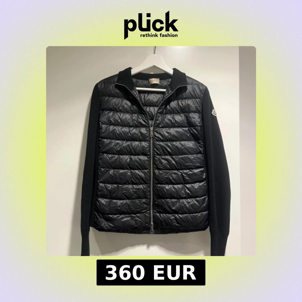 Svart cardigan från Moncler med quiltad front och rygg i glansigt material, stickade ärmar och krage. Jackan har dragkedja framtill och Moncler-logga på vänster ärm. Perfekt för dig som vill ha en clean och stilren look.