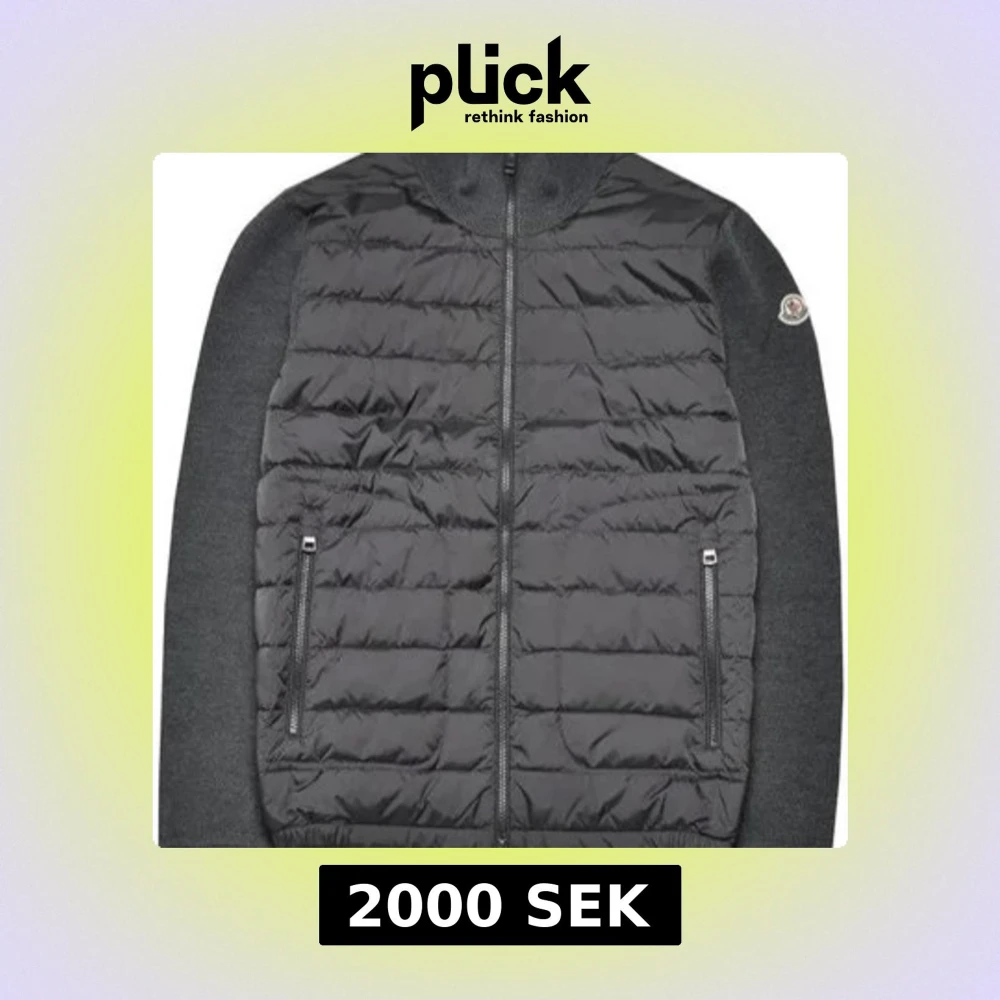 Snygg grå cardigan jacka från Moncler enligt bild med quiltad front och stickade ärmar. Jackan har dragkedja framtill, två fickor med dragkedja och Moncler-logga på ärmen. Perfekt för dig som vill ha en stilren och sportig look.