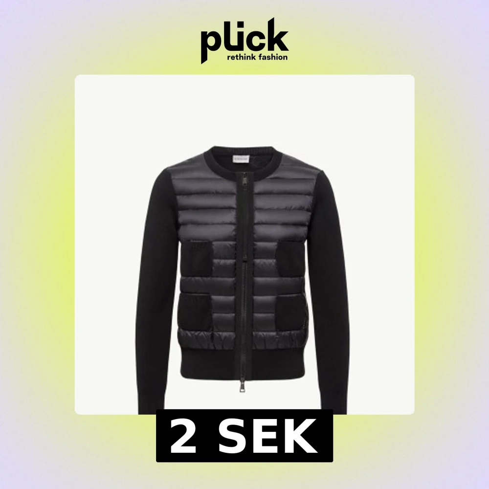 Snygg svart cardigan jacka från Moncler med quiltad front i dun och stickade ärmar. (SÖKES)(SÄLJER DU HÖR GÄRNA AV ER)(ÄKTA!!!)(STORLEK S) (Kan även bytas mot något!)