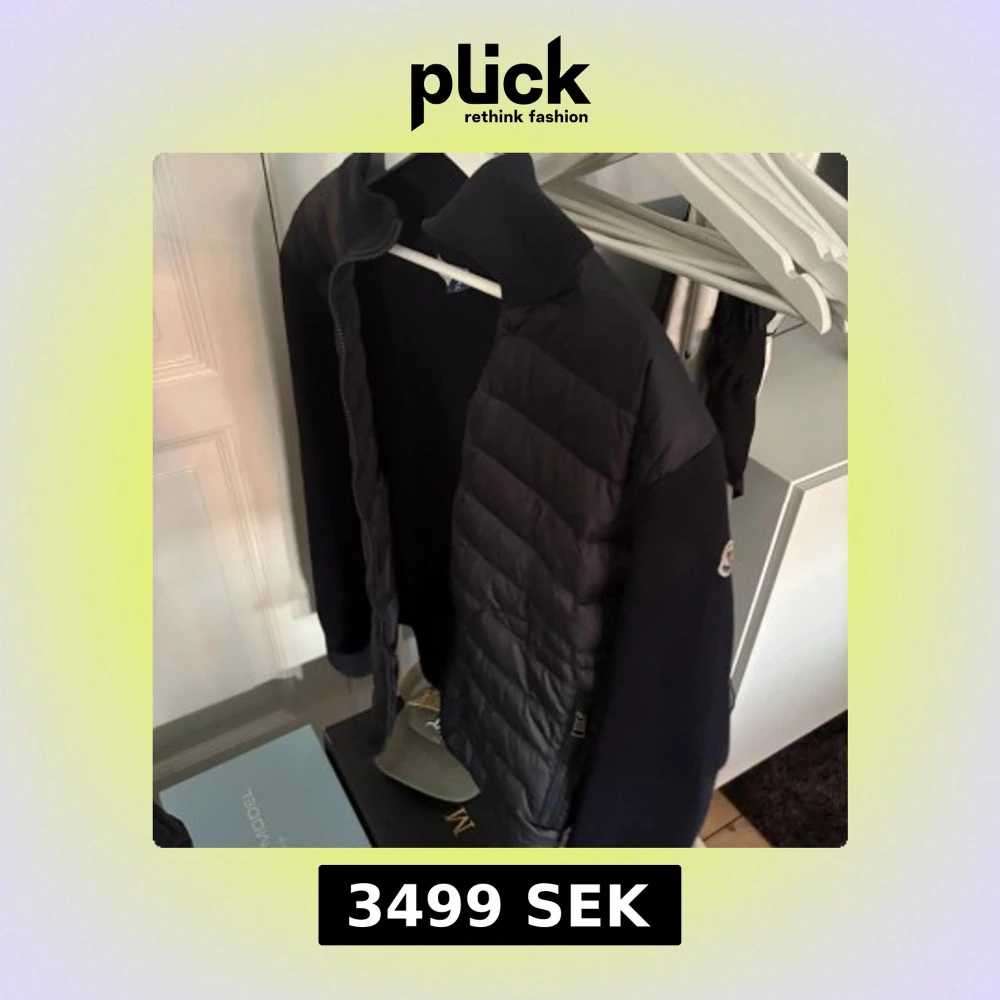 Snygg mörkblå cardigan jacka från Moncler med quiltad front och ärmar i stickad ull. Jackan har dragkedja och klassisk Moncler-logga på ärmen. Perfekt för dig som vill ha en stilren och exklusiv look med sportig touch. Men dragkedjan funkar ej‼️ och jackan har väldigt små hål inuti jackan som inte synds