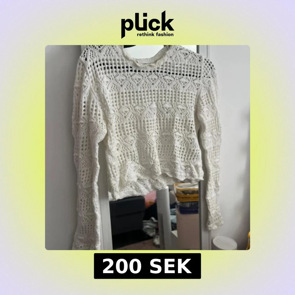 Säljer en vit virkad tröja från Monki med lång ärm och snyggt spetsmönster. Blusen har en croppad passform och är tillverkad i stickad bomull med genombrutet mönster som ger en cool och luftig vibe. Perfekt för dig som gillar detaljer och vill sticka ut.