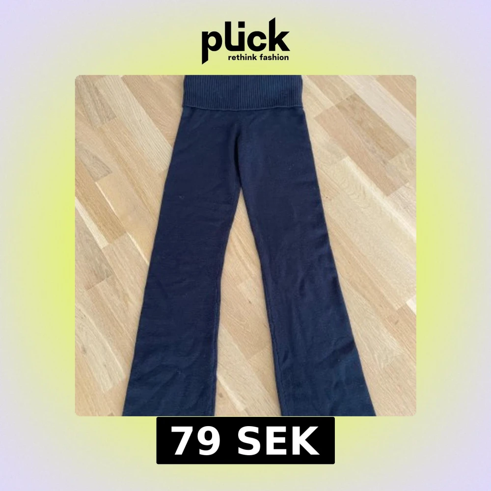 Mörkblå stickade yogapants från Gina Tricot med bred resår i midjan. Bootcut.
