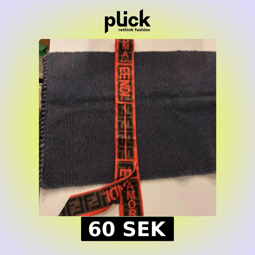 Snygg mörkblå halsduk/till håret eller runt hals från Fendi med bred, svart och röd logotypband längs kanten. Halsduken har en stickad struktur och den ikoniska Fendi-loggan i mönstret på bandet. Perfekt accessoar för att lyfta din outfit.