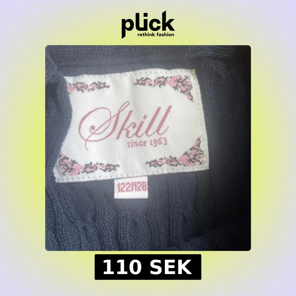 Mörkblå kabelstickad kofta från Skill med rund hals och knappar framtill. Långärmad och ribbade muddar vid ärmslut och nederkant. Perfekt för lager-på-lager och snygg till jeans eller kjol.