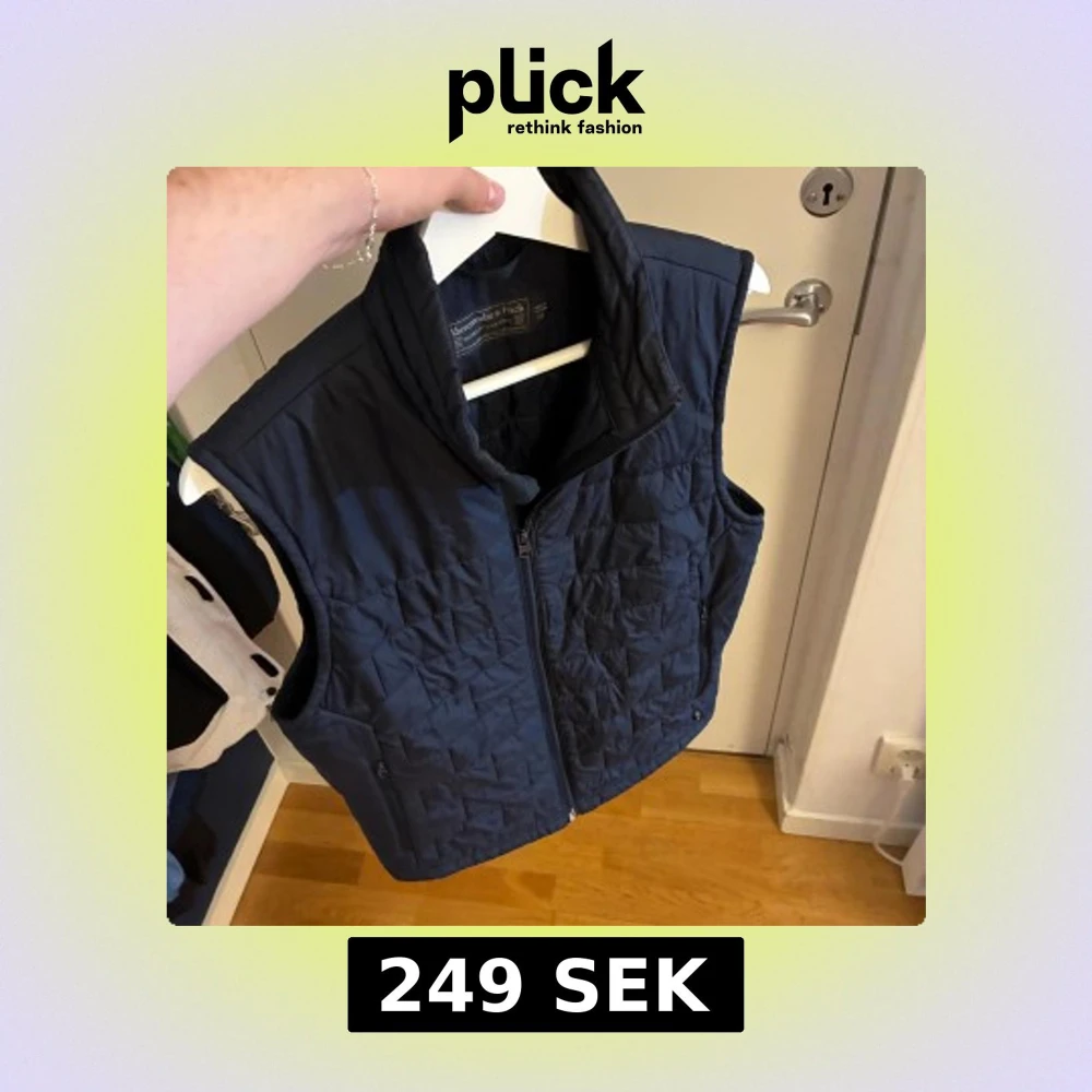 Quiltad mörkblå dunväst från Abercrombie & Fitch i storlek XS. Västen har hög krage, dragkedja framtill och två fickor med dragkedja. Perfekt för lager-på-lager och snygg till både hoodie och t-shirt.