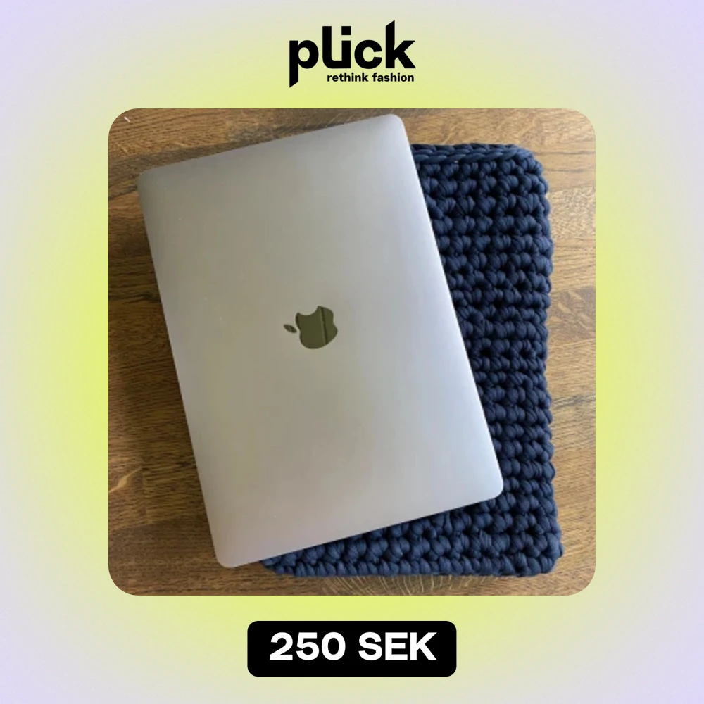 Säljer en superfin mörkblå datorväska som jag virkat själv. Passar perfekt för att skydda din laptop. Väskan är handgjord med ett tjockt och mjukt material som ger bra skydd mot stötar och repor. Passar min MacBook som är ca 33x22cm