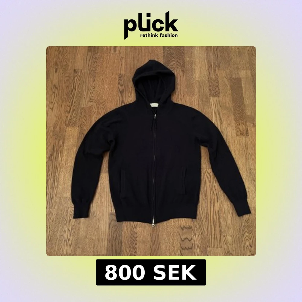 Mörkblå stickad hoodie med hel dragkedja framtill och huva med snörning. Tröjan har långa ärmar, ribbade muddar och två fickor på framsidan. Perfekt för chill dagar och enkel att matcha med jeans eller joggers.