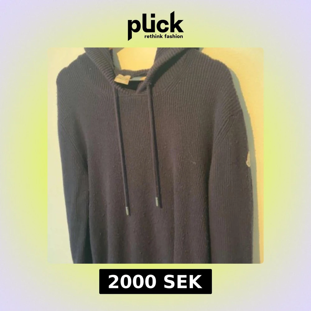 Säljer en mörkblå stickad hoodie från Moncler med huva och snörning. Tröjan har långa ärmar och en klassisk Moncler-logga på ärmen. Perfekt för dig som gillar en chill och exklusiv stil. Jävkligt skön