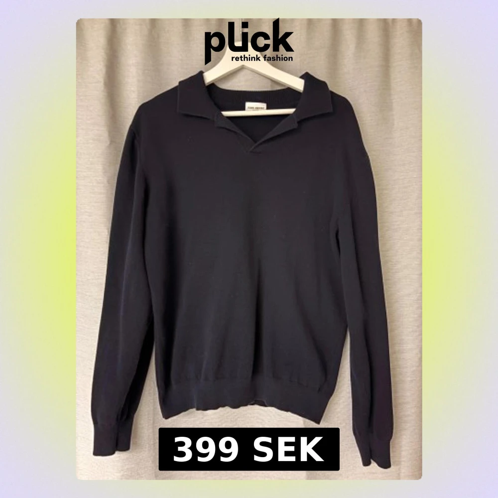 Mörkblå stickad pikétröja från John Henric. Storlek L men passar mer M. Tröjan är använd fåtal gånger så väldigt bra skick. Äkta köpt från John Henric för runt 800kr.
