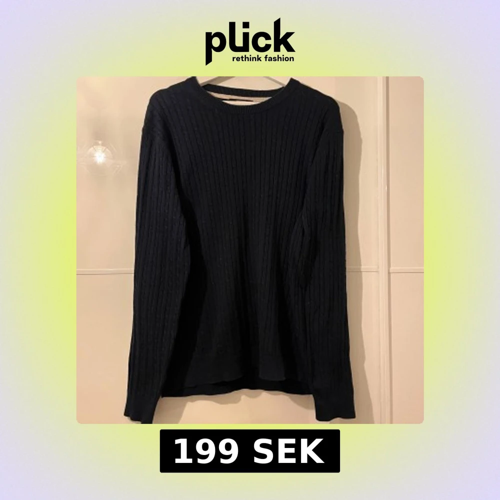 Mörkblå stickad tröja med en snyggt mönster. Inga defekter, använd fåtal gånger, mycket bra skick. Går perfekt ihop med en pike/skjorta under eller bara en t-shirt! Hör av er vid funderingar 🙌