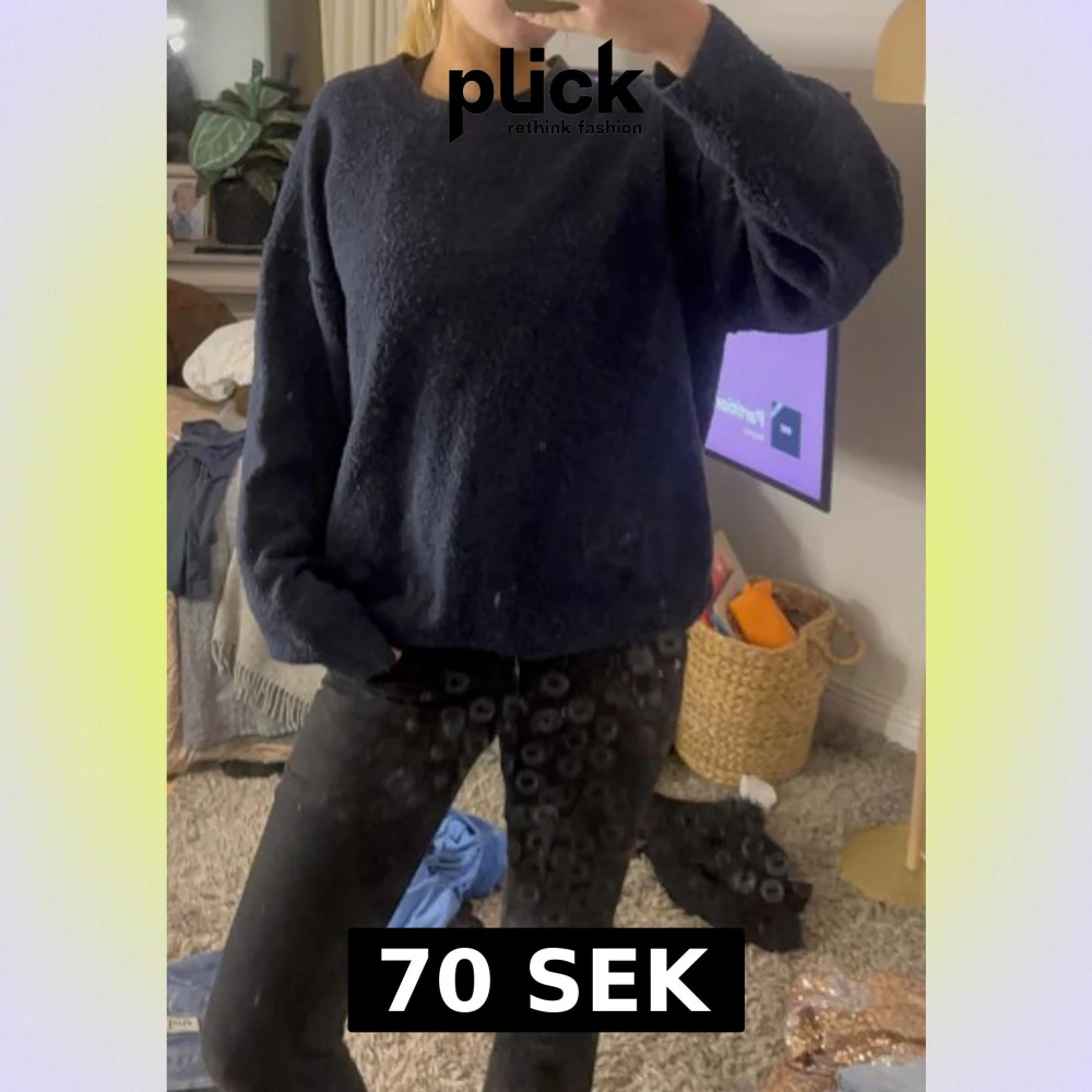 Mysig mörkblå stickad tröja med rund hals och långärmad passform. Tröjan har en loose fit och är perfekt för kyligare dagar. Enkel och stilren design som är lätt att matcha med olika outfits.