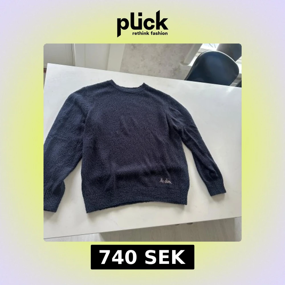 Säljer en snygg mörkblå stickad tröja från Les Deux. Tröjan har en enkel design med broderad logga på framsidan och är perfekt för kyligare dagar. Den har långa ärmar och en bekväm passform.