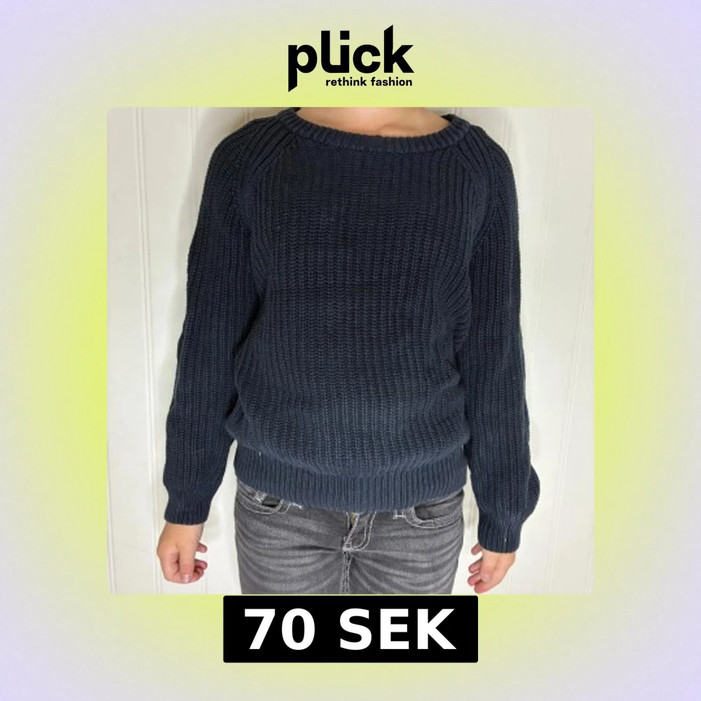 Mörkblå stickad tröja från Pelle P med grov struktur och rund hals. Tröjan har långa ärmar och en liten logotyp på ena ärmen. Säljer på grund av att den är för liten för mig. Pris kan diskuteras❤️