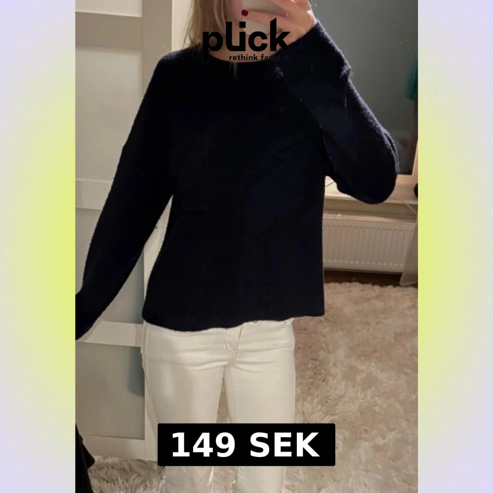 Säljer en mörkblå stickad tröja från Zara. Den har även en lite ficka på vänstra sidan och är i strl S💗