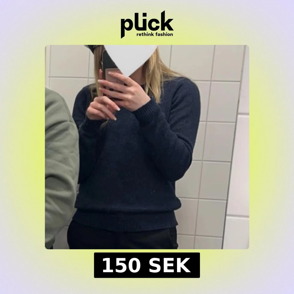 Säljer en stilren mörkblå stickad tröja med rund hals. Perfekt för kyligare dagar och enkel att matcha med olika outfits. Tröjan har långa ärmar och en klassisk passform. 💙💙💙