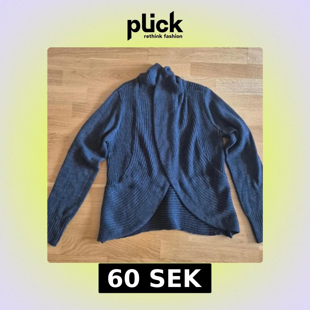 Säljer en mörkgrå, öppen kofta från H&M Basic i storlek M. Koftan har snygga ribbade partier framtill och på ärmarna, samt en omlottliknande framkant. Perfekt för lager-på-lager och chill vardagsstil.