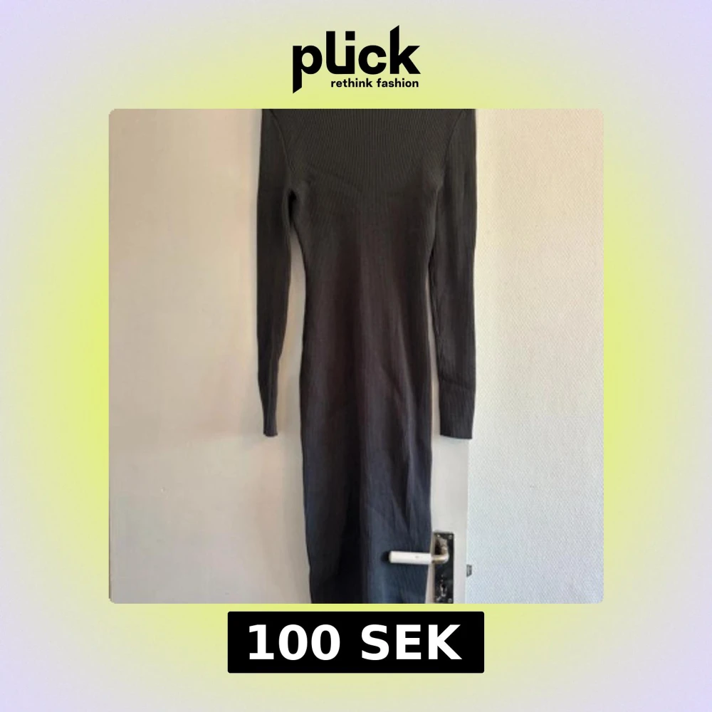 Säljer en mörkgrå långklänning från H&M i ribbstickat material. Klänningen har lång ärm och en kroppsnära passform som framhäver siluetten. Perfekt för dig som gillar en stilren och enkel look med lite edge.