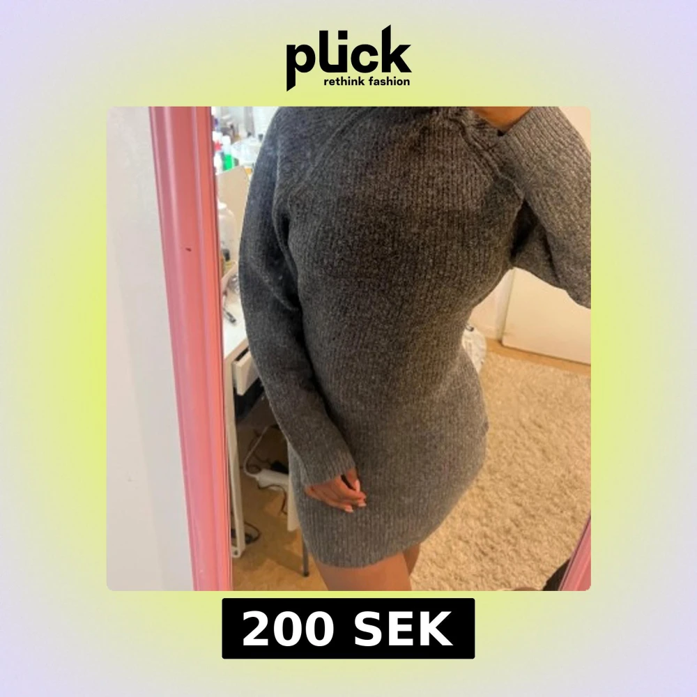 Mysig och stilren mörkgrå stickad klänning med lång ärm och tight passform. Helt ny med prislapp på! Strl S