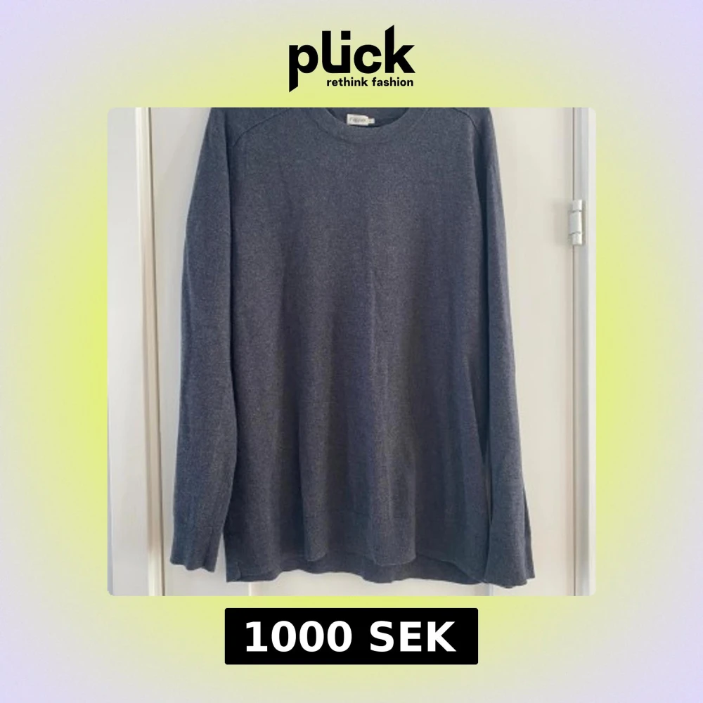 Snygg mörkgrå stickad tröja från Filippa K i storlek XL. Tröjan har rund hals och långa ärmar, perfekt för dig som gillar stilrena och enkla plagg. Materialet är mjukt och skönt, passar dig som vill ha en klassisk look med modern touch. Mått Över bröstet: ca 60 cm Längd från axeln och ner: ca 74 cm 50% ull och 50% bomull Kommer från ett djur och rökfritt hem.