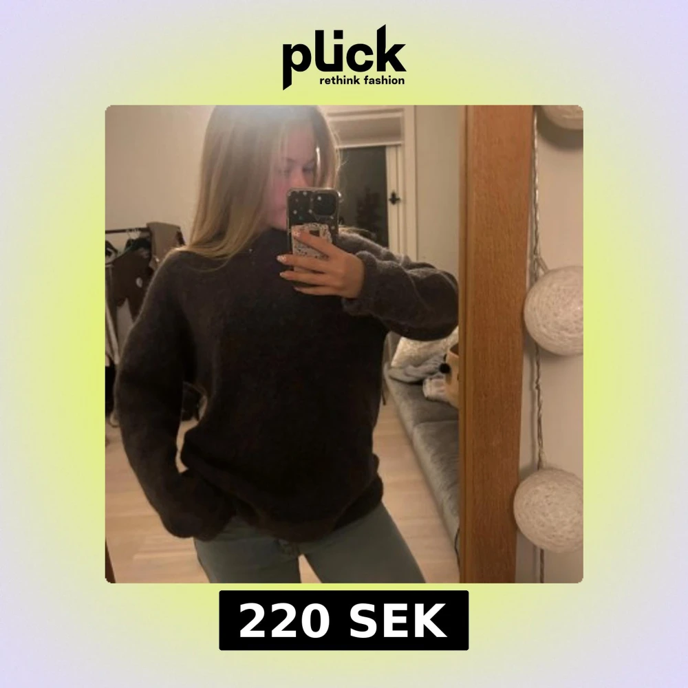 Mysig mörkgrå stickad tröja från H&M i ull- och alpackablandning. Tröjan har en enkel, klassisk design med rund hals och långa ärmar. Perfekt för kyliga dagar och superenkel att styla med jeans eller kjol. Knappt använd
