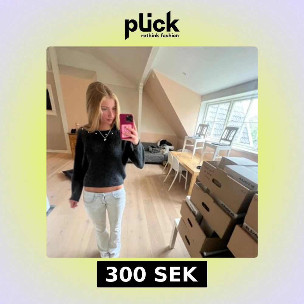 Mysig mörkgrå stickad tröja med rund halsringning och pärldetaljer längs halsen. Tröjan har en croppad passform och långa ärmar, perfekt för lager-på-lager under kyliga dagar. Så fin och unik, vet inte var den är ifrån då det inte finns nån lapp men är i bra skick!