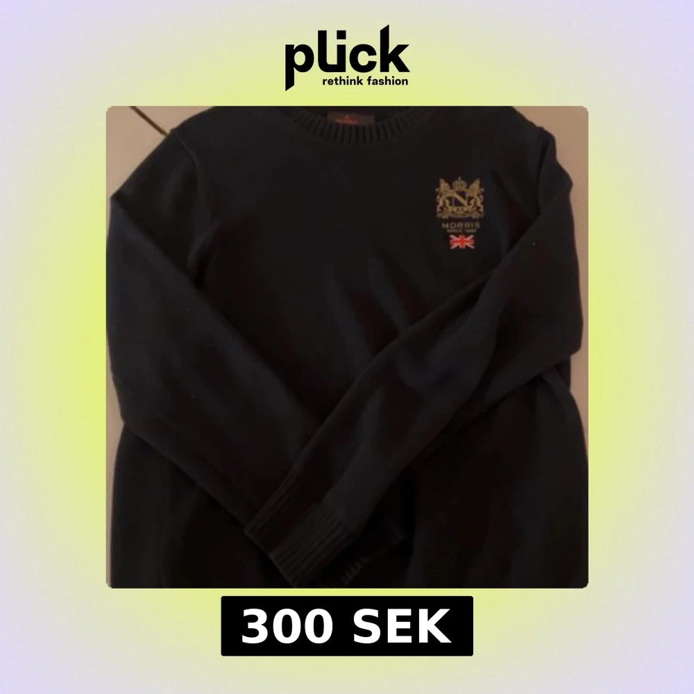 Snygg mörkblå stickad tröja från Morris i storlek L. Tröjan har rund hals, ribbade muddar och ett broderat emblem med engelsk flagga på bröstet. Perfekt för dig som gillar klassisk stil med en twist.