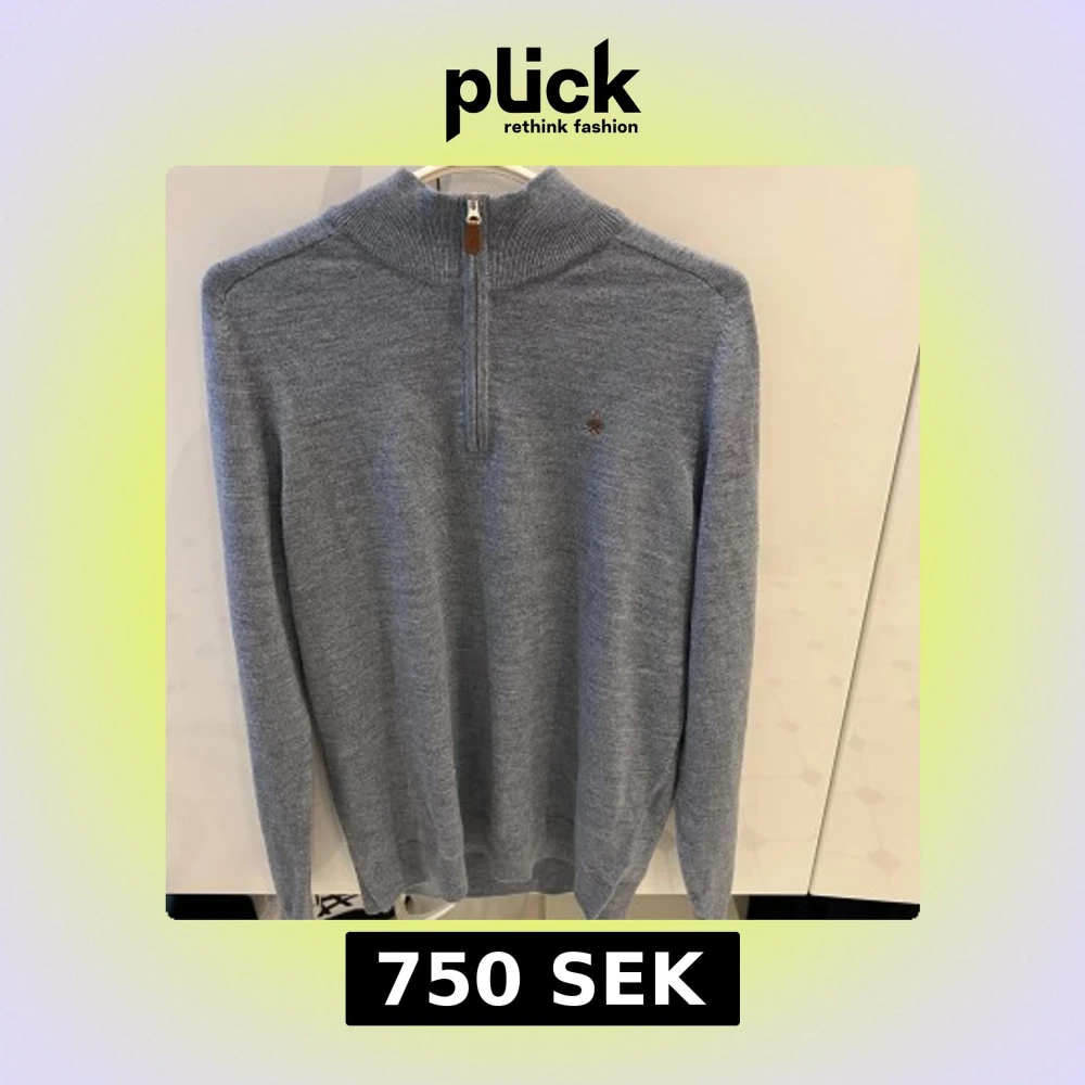 Snygg ljusblå tröja från Morris i 100% merinoull. Tröjan har halv dragkedja vid halsen, ribbade muddar och en liten broderad logga på bröstet. Perfekt för lager-på-lager och stilren look.