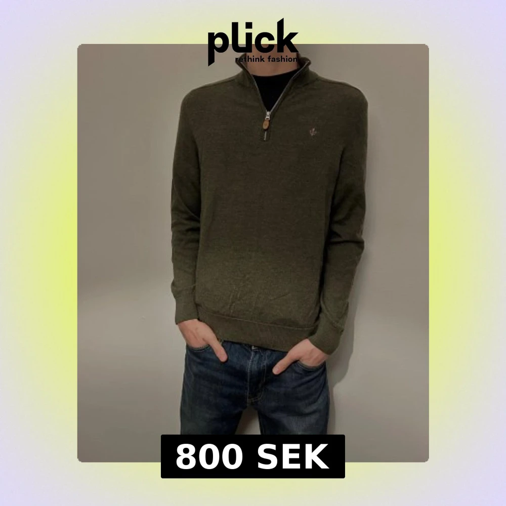Snygg olivgrön stickad tröja från Morris med half zip och liten broderad logga på bröstet. Tröjan har långärmad passform, ribbade muddar och en klassisk krage. Perfekt för dig som gillar stilrena och bekväma plagg. Använd endast några gånger!