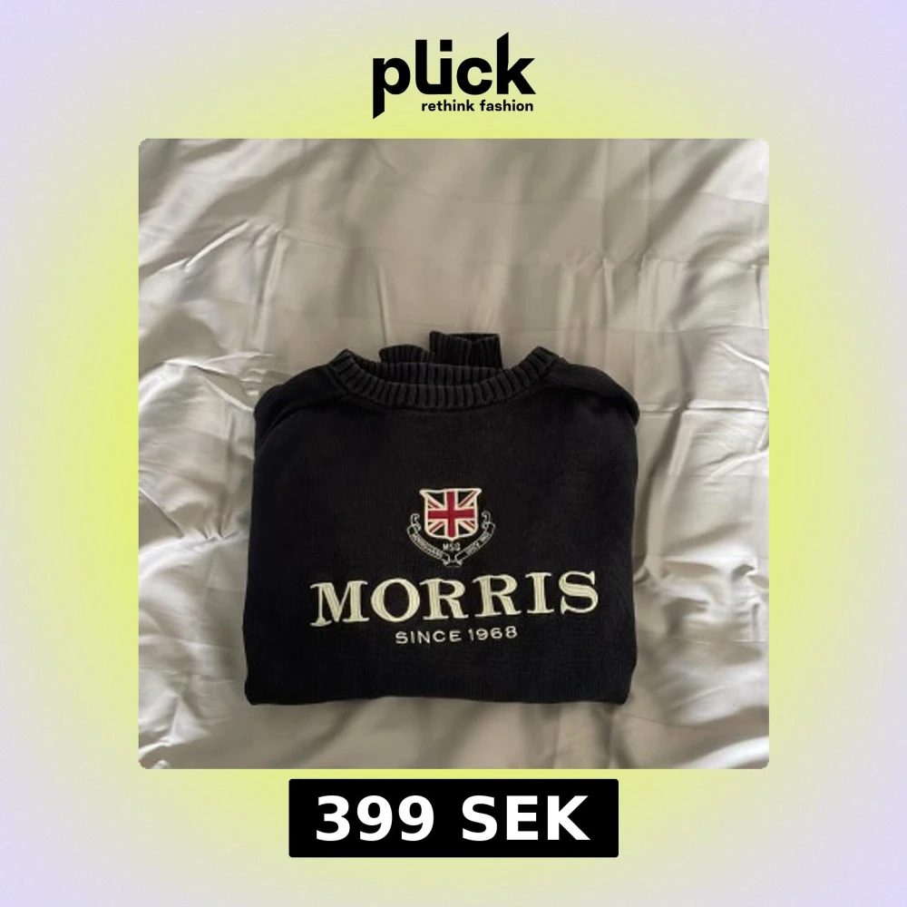 Svart stickad tröja från Morris med broderad logga och brittisk flagga framtill. Tröjan har rund halsringning, ribbade muddar och lång ärm. Perfekt för dig som gillar klassisk och stilren design med en preppy touch.