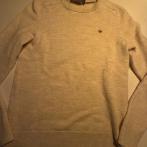 Säljer en stilren beige tröja från Morris i 100% merinoull. Tröjan har en liten broderad detalj på bröstet och långa ärmar. Perfekt för kyligare dagar. Lite liten i storlek