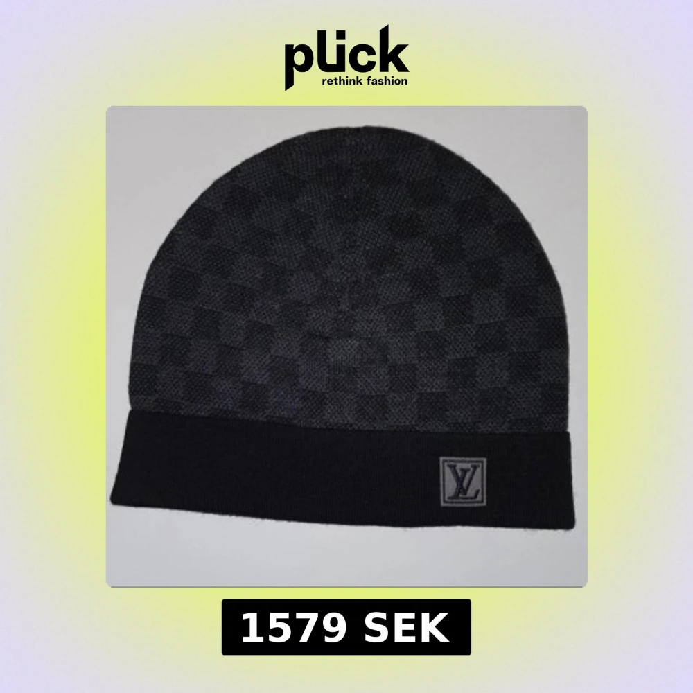Snygg svart mössa från Louis Vuitton med diskret rutigt mönster och klassisk LV-logga framtill. Mjuk och skön stickad kvalitet som passar perfekt när det är kallt ute. Stilren design som lyfter din look. Fräsch och som ny MITT PRIS 1650kr OBS ATT VETA kommer utan kvitto/box