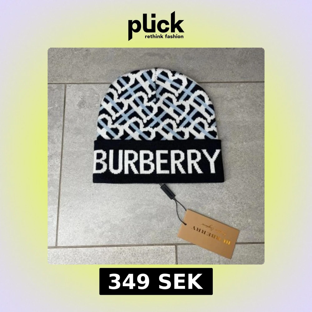 Snygg mössa med stor vit logga framtill och ett grafiskt mönster i svart, vitt och ljusblått. Mössan är stickad och har en uppvikt kant. Perfekt för dig som vill ha en trendig accessoar med lyxig känsla.