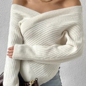 Vit off shoulder stickad tröja