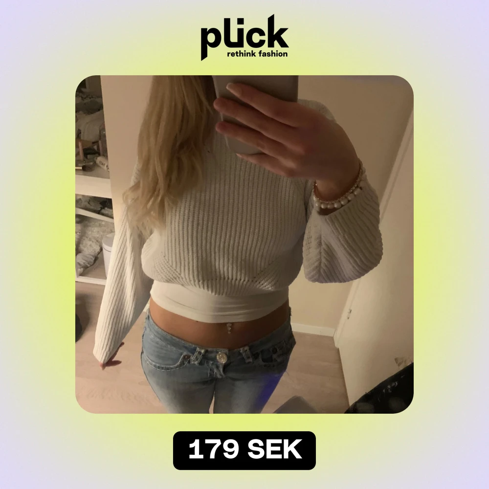 Vit/beige croppad ribbad stickad tröja, perfekt för hösten. Långa ärmar och jätte mjuk💕☺️
