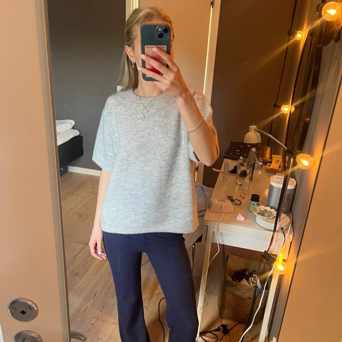 Super fin ljusgrå trekvarts stickad tröja från Gina Tricot. Aldrig använd utöver bilderna som togs.