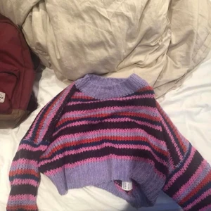 Beige stickad tröja  - Mysig beige/ljusrosa oversized tröja från H&M i storlek XS.  Perfekt för kyliga dagar och enkel att styla med jeans eller kjol. Materialet är mjukt och ger en avslappnad vibe.