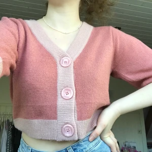 En jättefin stickad kofta som är croppad i flernyanserad rosa. I storlek S, den är true to size och aldrig använd frå NA-KD. Fraktpris tillkommer.