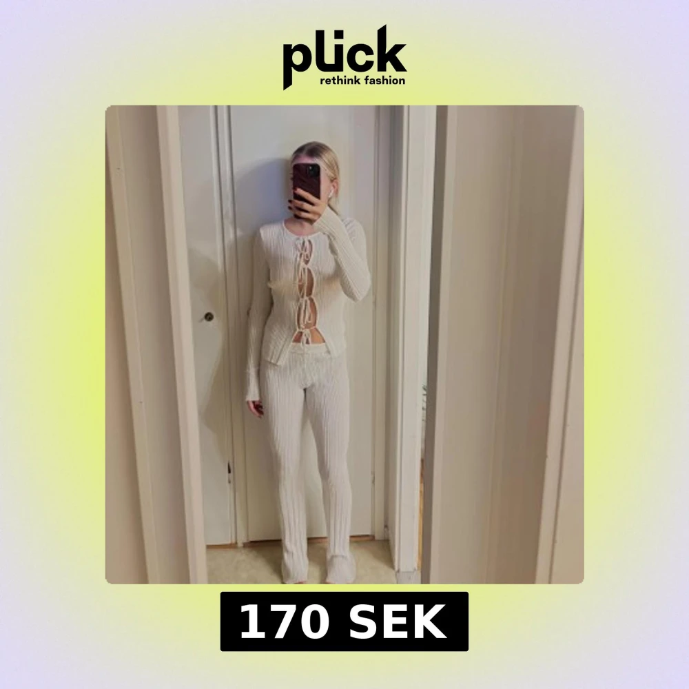 Vita ribbade byxor med matchande tröja från NAKD. Storlek 36.