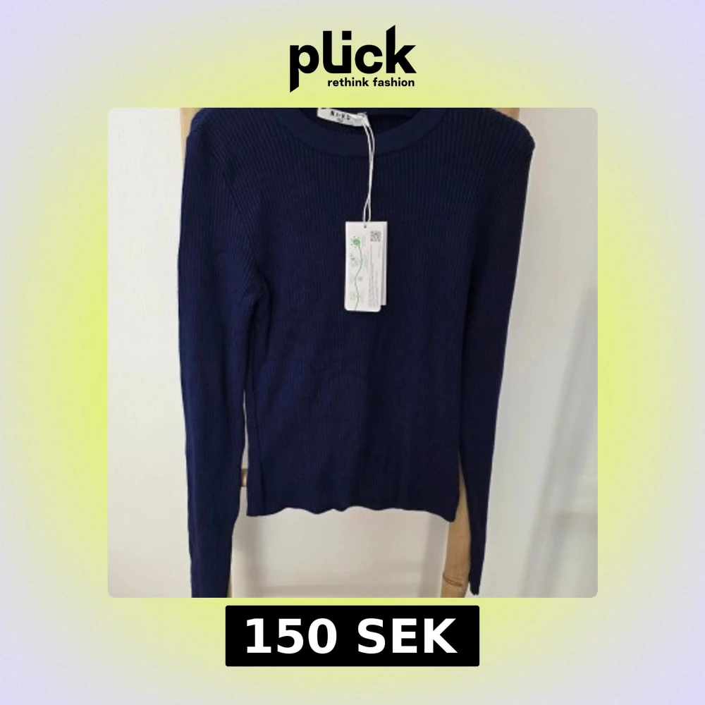 Säljer en marinblå ribbstickad tröja från NA-KD. Tröjan har rund halsringning och långa ärmar, perfekt för lager-på-lager. Enkel och stilren modell som är lätt att matcha med olika outfits.