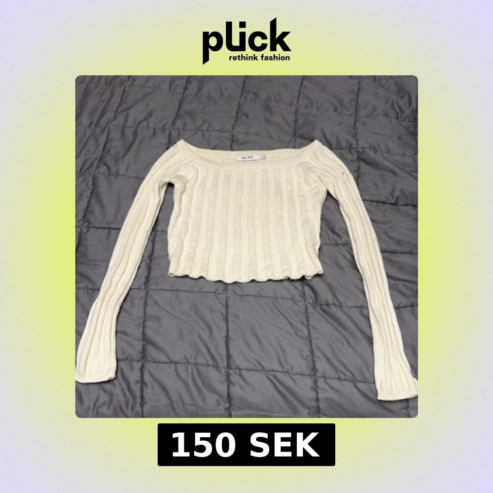 Superfin croppad topp från NA-KD i beige stickat material. Toppen har långa ärmar, ribbad struktur och en snygg offshoulder-ringning.