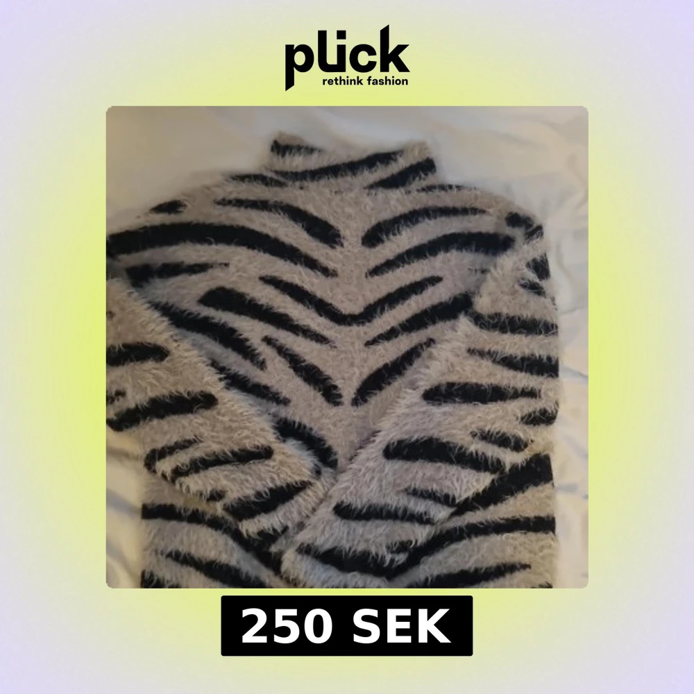 Supermjuk och fluffig zebramönstrad tröja från NA-KD i svart och grått. Tröjan har hög hals och långa ärmar, perfekt för dig som vill sticka ut med en cool look. Materialet är stickat och känns riktigt cozy.