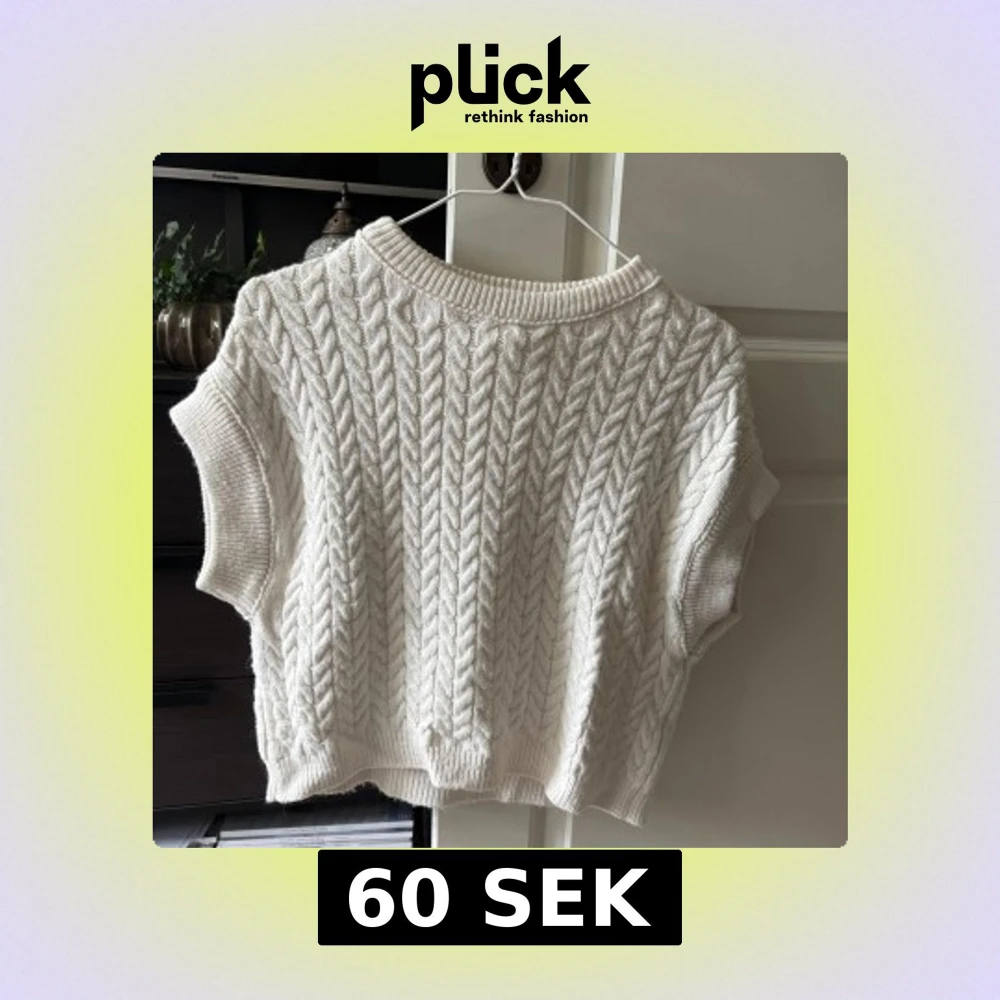 Superfin vit stickad väst från NA-KD i storlek XS. Västen har ett klassiskt flätstickat mönster, ribbade kanter vid hals och ärm samt en något boxig passform. Perfekt att styla över en skjorta eller t-shirt för en trendig lager-på-lager-look.