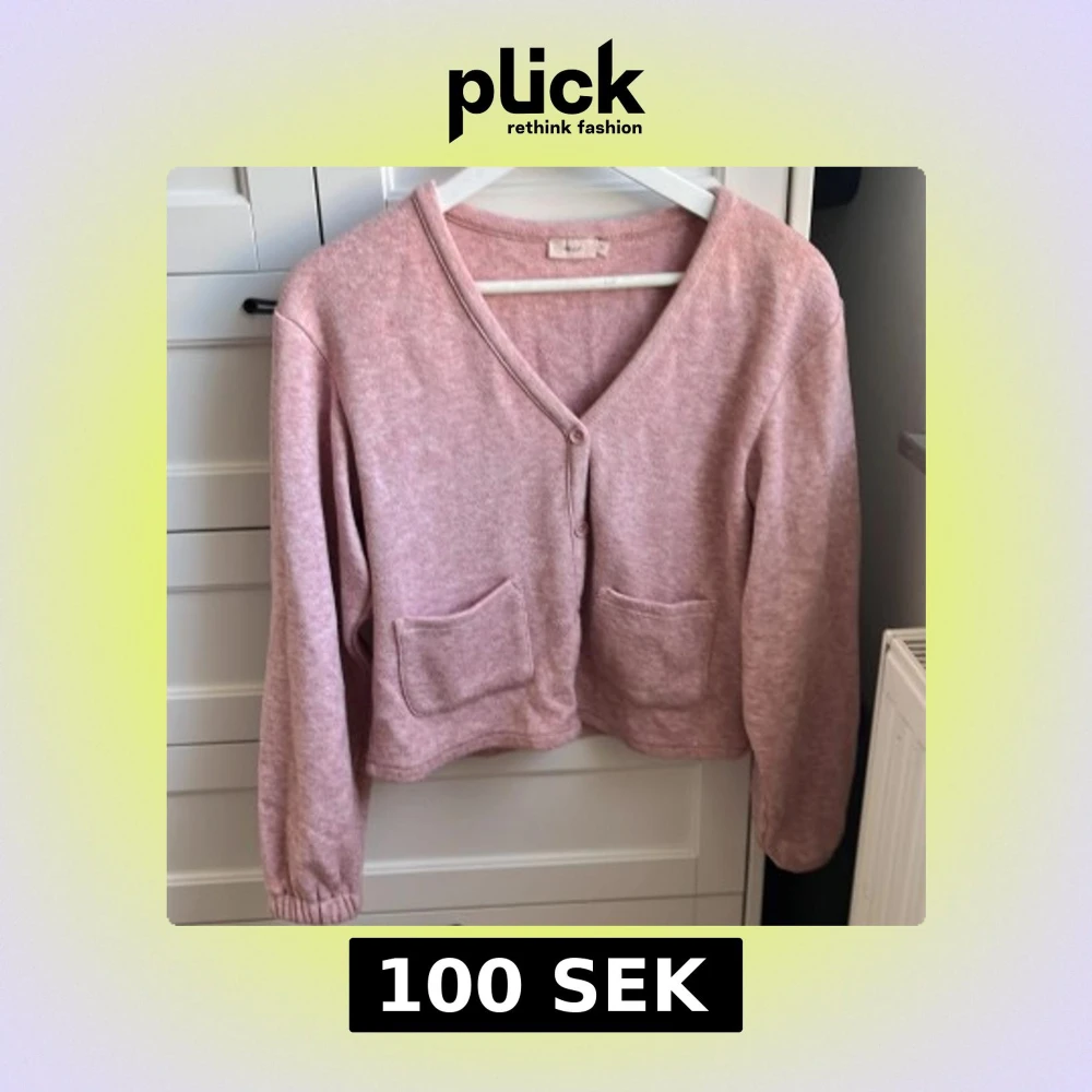 Säljer en ljusrosa kofta från Nelly med v-ringning och två framfickor. Koftan har långa ärmar, knäppning framtill med två knappar och är i ett mjukt, stickat material. Perfekt för lager-på-lager och enkel att matcha.