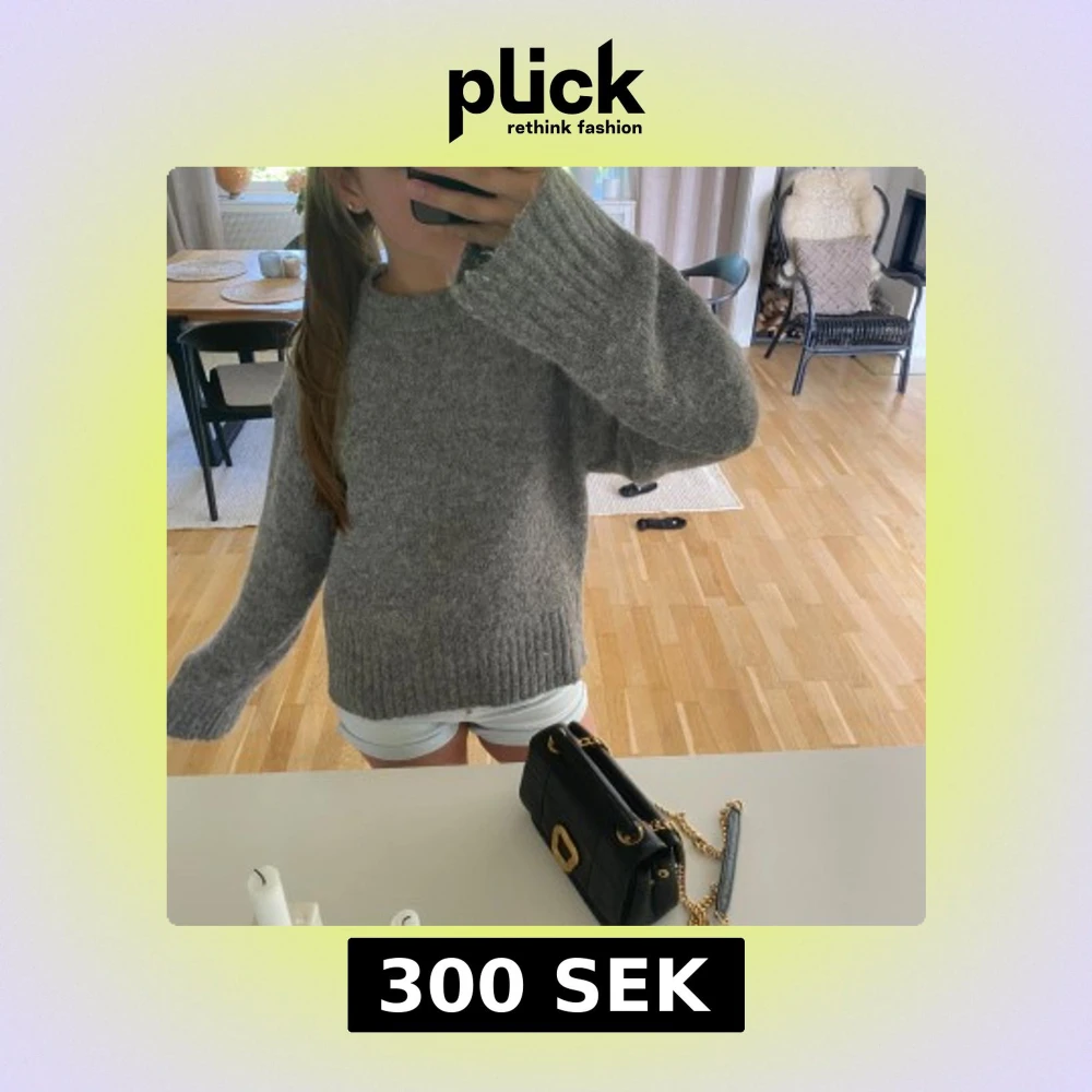 Mysig grå stickad tröja med lång ärm och bred ribbad kant nedtill och vid ärmslut. Perfekt för kyligare dagar och enkel att matcha med olika outfits. Säljer då den inte kommer till användning. Ändats använd en gång. Hör av er vid frågor😊