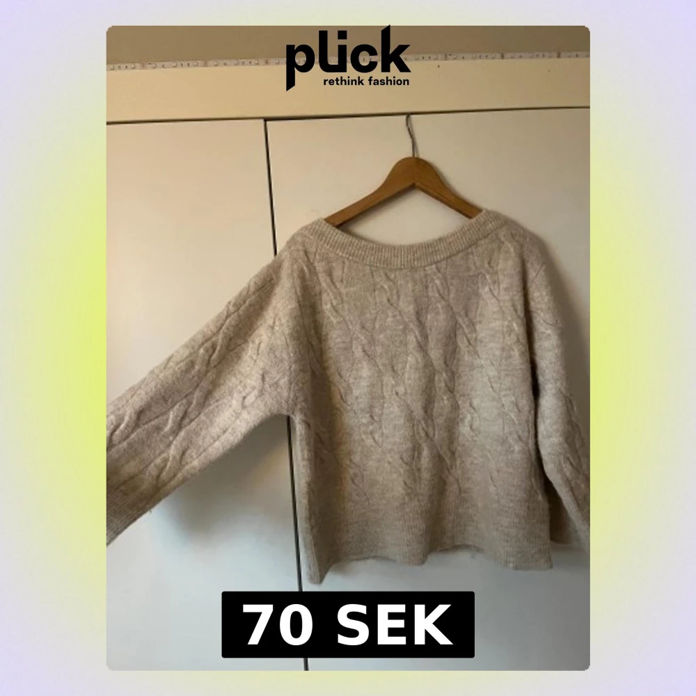 Säljer en beige stickad tröja med bred ribbad kant vid halsen som kan bäras offshoulder. Tröjan har ett snyggt flätmönster och ärmar med ribbade muddar. Modellen är loose fit och ger en chill och avslappnad vibe. Perfekt för att mysa i under kyliga dagar. Ordenarie pris 299 kr från Nelly.
