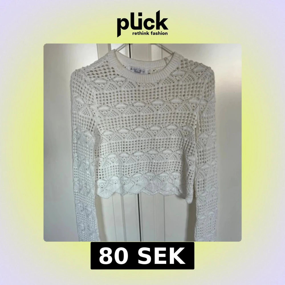 Vit stickad croppad tröja