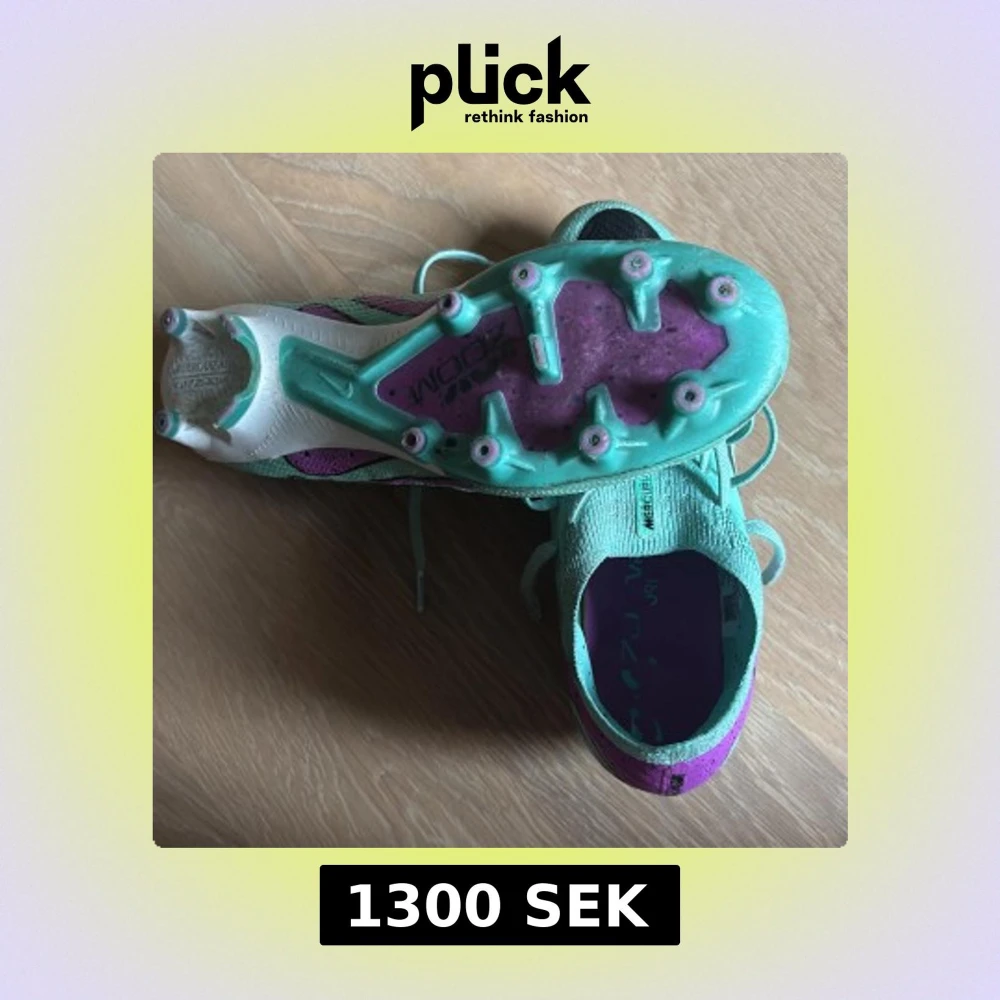 Nike Mercurial fotbollsskor i mintgrönt och lila med svarta detaljer. Ovandel i stickad syntet för tight passform och maximal bollkontroll. Skorna har snörning och dobbar för gräsplan. Snygg design med Zoom-dämpning i sulan för extra respons.