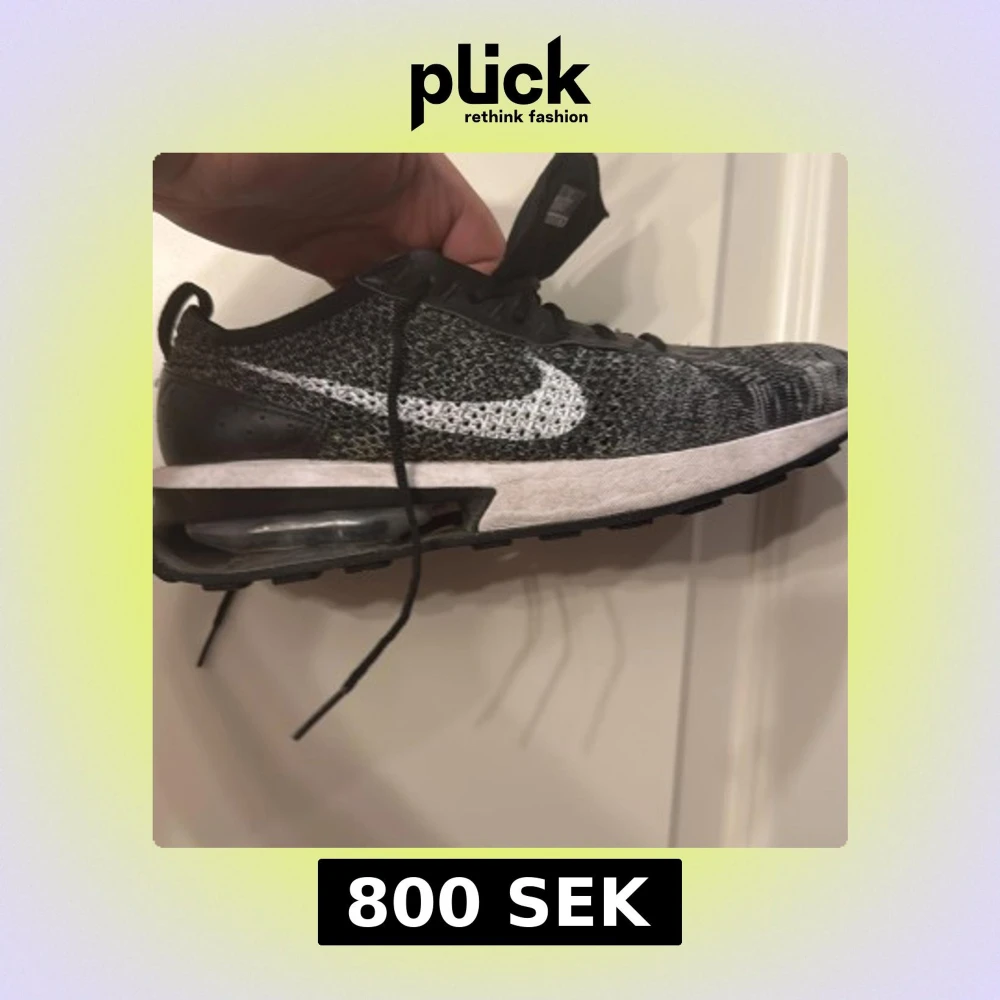 Säljer ett par Nike Air Max med Flyknit-överdel i svart och vitt. Skorna har en stickad ovandel, synlig Air Max-dämpning i sulan och klassisk vit Swoosh på sidan. Perfekta för dig som gillar sportig stil och vill ha riktigt sköna sneakers med snygg design. Köpte den för 2000kr helt ny oanvänd äkta